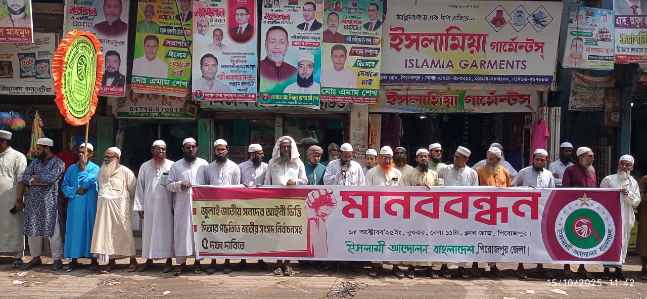 পিরোজপুরে ইসলামী আন্দোলন বাংলাদেশের মানববন্ধন কর্মসূচি পালন