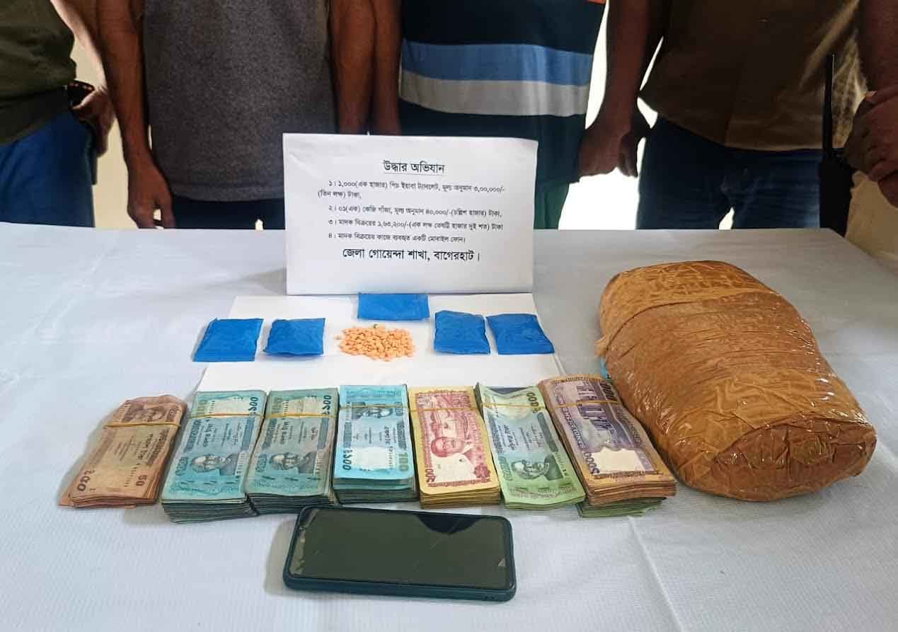 বাগেরহাটে এক হাজার পিস ইয়াবা ও নগদ এক লক্ষ ৬৩ হাজার টাকাসহ দুই মাদক কারবারি আটক
