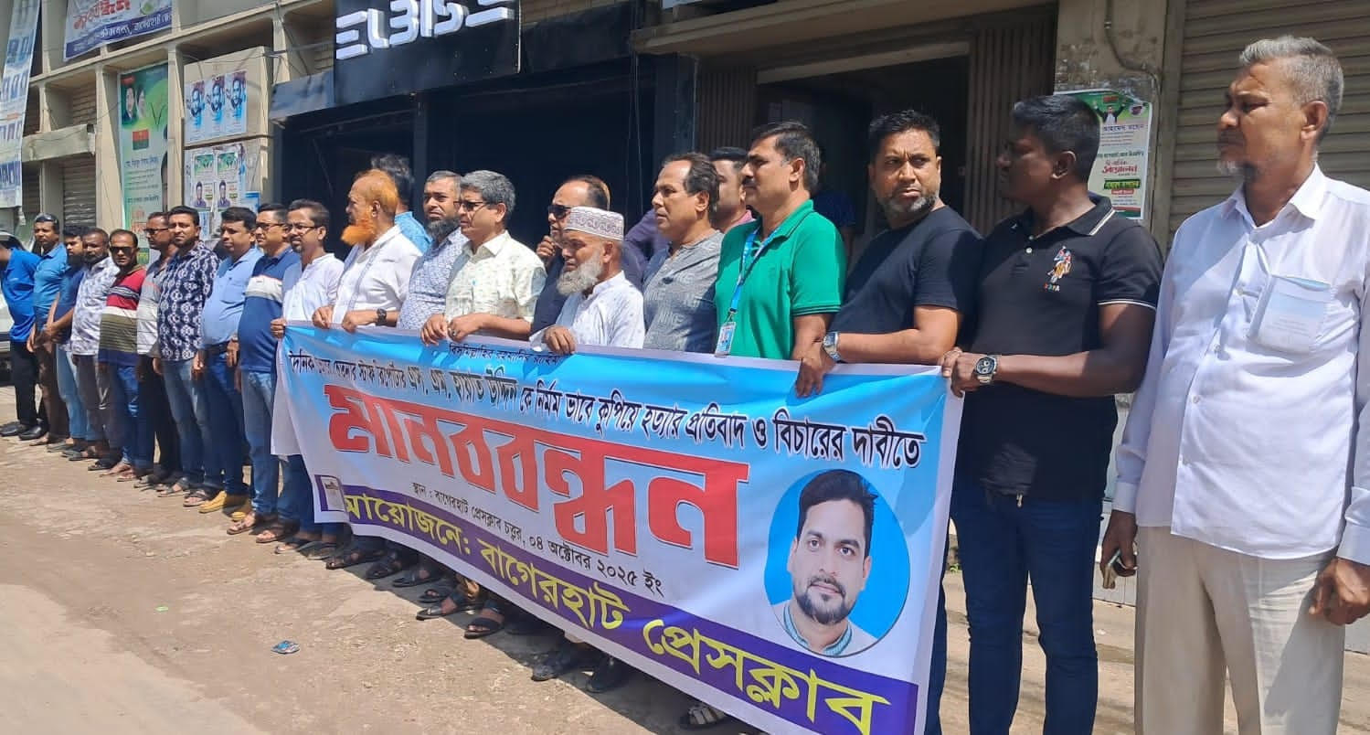 বাগেরহাটে সাংবাদিক হত্যার বিচার ও শাস্তির দাবিতে মানববন্ধন