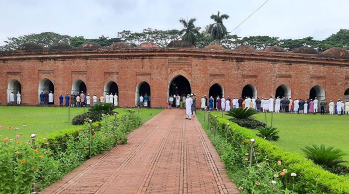 জেলা প্রতিনিধি, বাগেরহাট: প্রতি বছরের মতো এবারও দক্ষিণ-পশ্চিমাঞ্চলের ঈদুল আযহার প্রধান জামায়াত বাগেরহাটে ঐতিহ্যবাহী ষাটগম্বুজ মসজিদে অনুষ্ঠিত হবে। মসজিদে ঈদের তিনটি জামায়াত অনুষ্ঠিত হবে। প্রথম জামায়াত হবে সকাল ৭টায়, দ্বিতীয় জামায়াত ৭.৪৫ মিনিটে এবং সর্বশেষ জামায়াত সাড়ে ৮টায়।বিষয়টি নিশ্চিত করেছেন বাগেরহাটের জেলা প্রশাসক মোহাম্মদ খালিদ হোসেন। ঈদুল ফিতরের প্রথম ও প্রধান জামায়াতে ইমামতি করবেন বাগেরহাট আলিয়া (কামিল) মাদরাসার অধ্যক্ষ মাওলানা আবুল কালাম আজাদ। দ্বিতীয় জামায়াতে ইমামতি করবেন ষাট গম্বুজ মসজিদের ভারপ্রাপ্ত ইমাম মাওলানা মো. নাসির উদ্দিন। তৃতীয় এবং সর্বশেষ জামায়াতে ইমামতি করবেন সিঙ্গাইড় জামে মসজিদের ইমাম মাওলানা মোজাহিদুল ইসলাম। বাগেরহাটের জেলা প্রশাসক মোহাম্মদ খালিদ হোসেন বলেন, প্রতিবারের মতো এবারও বাগেরহাটে ঈদের প্রধান জামায়াত ষাটগম্বুজ মসজিদে অনুষ্ঠিত হবে। ইতোমধ্যে পরিষ্কার পরিছন্নতার কাজ প্রায় শেষ