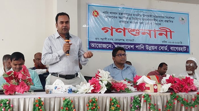 মোরেলগঞ্জ প্রতিনিধি: বাগেরহাটের মোরেলগঞ্জে পানি সম্পদ মন্ত্রানালয়ের অধীনে অগ্রাধিকার ভিত্তিতে বাস্তবায়নাধীন ও প্রস্তাবিত প্রকল্পের কাজের তথ্য প্রেরণ বিষয়ক গণশুনানি অনুষ্ঠিত হয়েছে। পানি সম্পদ মন্ত্রানালয়ের উপদেষ্টার নির্দেশনা মোতাবেক পানি উন্নয়ন বোর্ডের