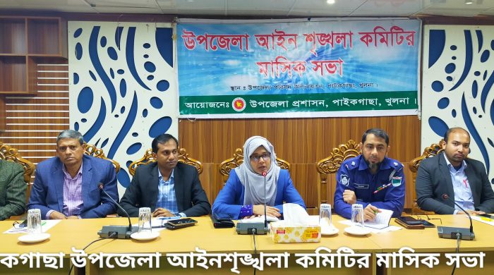 পাইকগাছা ( খুলনা) প্রতিনিধিঃ পাইকগাছা উপজেলা আইনশৃঙ্খলা কমিটির মাসিক সভা অনুষ্ঠিত হয়েছে। মঙ্গলবার সকালে উপজেলা পরিষদ মিলনায়তনে উপজেলা নির্বাহী অফিসার মাহেরা নাজনীন এর সভাপতিত্বে এ সভা অনুষ্ঠিত হয়। অনুষ্ঠিত সভায়