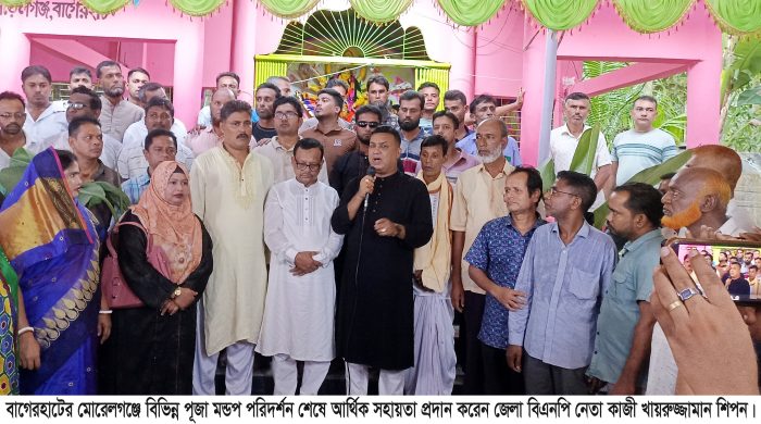 মোঃ নাজমুল মোরেলগঞ্জ (বাগেরহাট) প্রতিনিধি ॥ “ধর্ম যার যার, উৎসব তার তার”—এই মূলমন্ত্রকে সামনে রেখে বাগেরহাটের মোরেলগঞ্জ ও শরণখোলা উপজেলার বিভিন্ন সনাতনী পূজা মণ্ডপ পরিদর্শন করেছেন বাংলাদেশ জাতীয়তাবাদী তাতী দলের