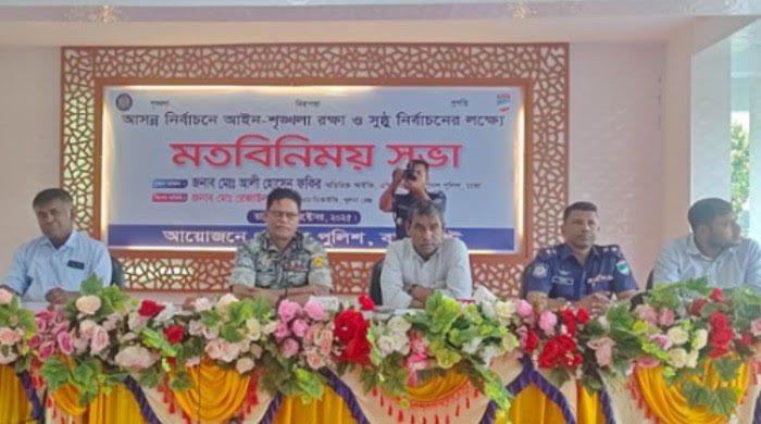 বাগেনহাট প্রতিনিধিঃ বাগেরহাটে আসন্ন নির্বাচনে আইনশৃঙ্খলা রক্ষা ও সুষ্ঠু নির্বাচন আয়োজনের লক্ষ্যে মতবিনিময় সভা অনুষ্ঠিত হয়েছে। বৃহস্পতিবার( ১৬ অক্টোবর) বিকালে পুলিশ লাইনে এ সভার আয়োজন করে বাগেরহাট জেলা পুলিশ এবং