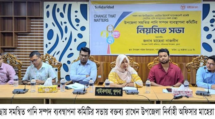পাইকগাছা (খুলনা) প্রতিনিধি: পাইকগাছায় সফল ফর ইন্টিগ্রেটেড ওয়াটার রিসোর্স ম্যানেজমেন্ট (সফল-IWRM) প্রকল্পের উপজেলা সমন্বিত পানি সম্পদ ব্যবস্থাপনা কমিটির নিয়মিত সভা অনুষ্ঠিত হয়েছে। বৃহস্পতিবার (১৬ অক্টোবর) সকালে উপজেলা পরিষদ মিলনায়তনে আয়োজিত
