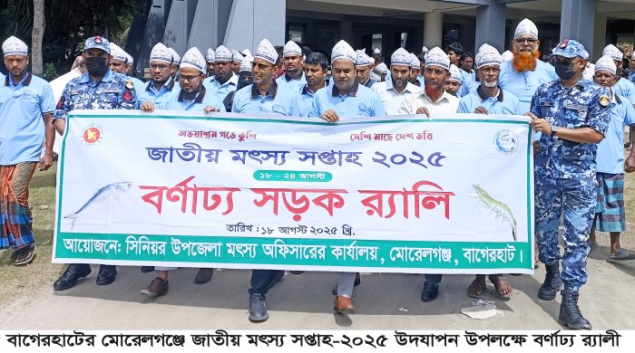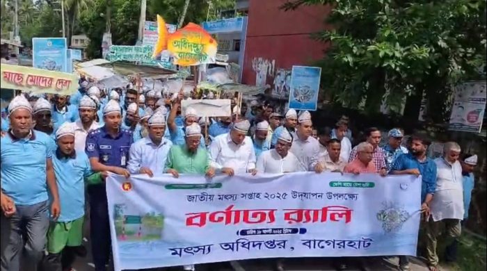 বাগেরহাট প্রতিনিধিঃ বাগেরহাটে বাগেরহাটে বর্নাঢ্য আয়োজনে মৎস্য সপ্তাহ শুরু হয়েছে। সোমবার (১৮ আগস্ট) বেলা ১১টায় বাগেরহাট উপজেলা পরিষদের সামনে থেকে একটি বর্নাঢ্য শোভাযাত্রা বের করা হয়। বিভিন্ন সড়ক প্রদক্ষিন শেষে