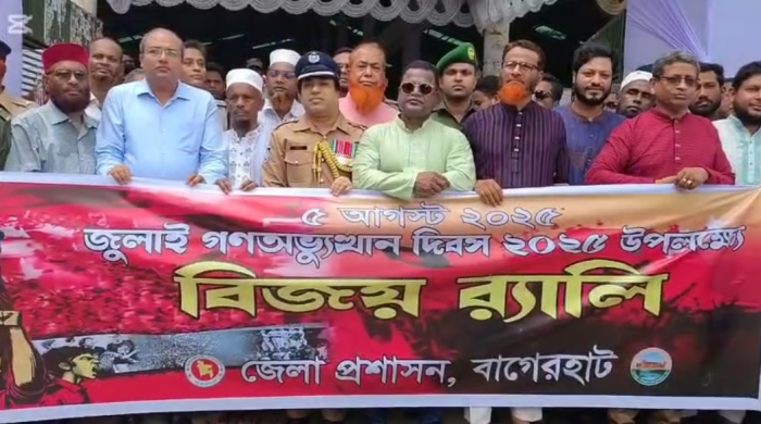 বাগেরহাট প্রতিনিধি: জুলাই গণঅভ্যুত্থান দিবস উপলক্ষে বাগেরহাট জেলার বিভিন্ন স্থানে বিজয় র্যালি, আলোচনা সভা অনুষ্ঠিত হয়েছে। শহিদদের স্মরণে বিভিন্ন ধর্মীয় উপাসনালয়ে হয়েছে প্রার্থনা। মঙ্গলবার (৫ আগষ্ট) সকালে জুলাই শহীদদের কবর