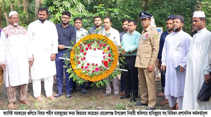 এম.পলাশ শরীফ, মোরেলগঞ্জ প্রতিবেদক: ফ্যাসিষ্ট সরকারের গুলিতে শহীদ মাহফুজের কবর জিয়ারত করেছেন মোরেলগঞ্জ উপজেলা প্রশাসনের কর্মকর্তারা। মঙ্গলবার বেলা সাড়ে ৮টার দিকে নিশানবাড়িয়া ইউনিয়নের বাইনতলা গ্রামে শহীদ মাহফুজের পিতা আব্দুল মান্নান