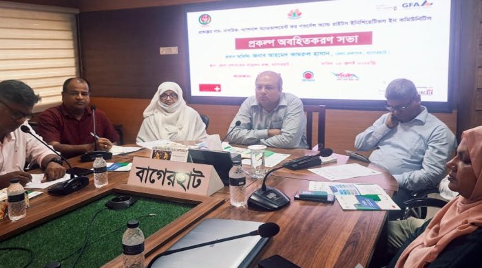 বাগেরহাট ব্যুরো চীফঃ ২৮ জুলাই (সোমবার) বাগেরহাট জেলা প্রশাসকের সম্মেলন কক্ষে নাগরিক প্রকল্পের অবহিতকরণ সভা অনুষ্ঠিত হয়েছে। এম্বাসি অব সুইজারল্যান্ড, গ্লোবাল এফেয়ার্স ক্fনাডা এবং মানুষের জন্য ফাউন্ডেশনের (এমজেএফ) অর্থায়নে আমরাই