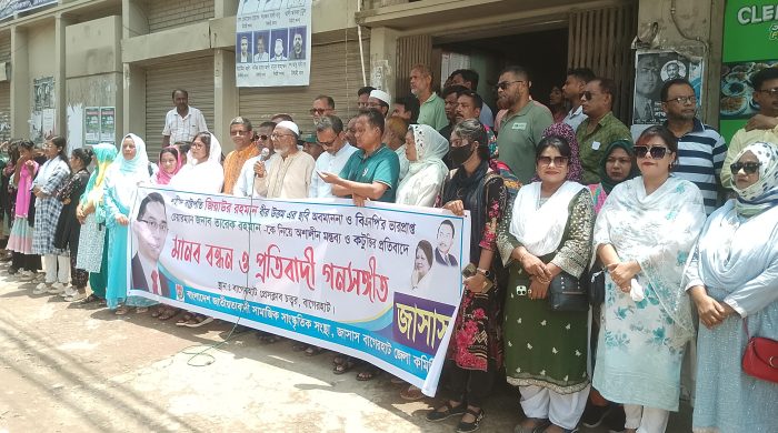 বাগেরহাট প্রতিনিধিঃ শহীদ রাষ্ট্রপতি জিয়াউর রহমানের (বীর উত্তম) ছবিও অবমাননা ও বিএনপির ভারপ্রাপ্ত চেয়ারম্যান তারেক রহমানকে নিয়ে অশালীন মন্তব্য-কটূক্তির প্রতিবাদে মানববন্ধন ও প্রতিবাদী গণসংগীত অনুষ্ঠান করেছে বাগেরহাট জেলা জাসাস। শনিবার