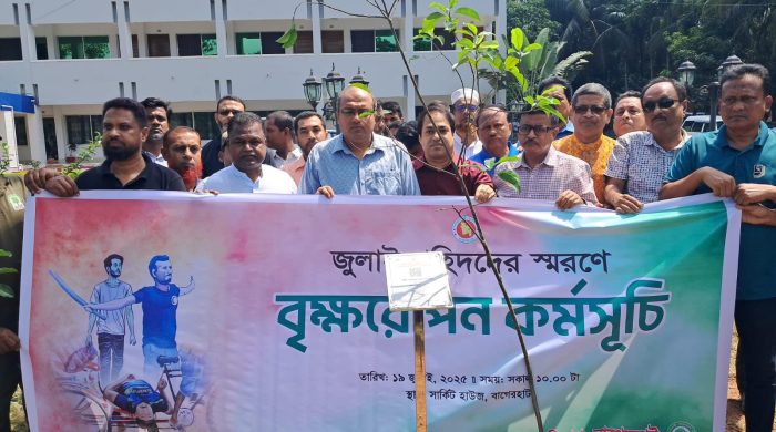 বাগেরহাট প্রতিনিধিঃ জুলাই-আগস্টে বাগেরহাটে গণঅভ্যুত্থানের সময় নিহত ৯ জন শহীদকে স্মরণ করে বৃক্ষরোপণ কর্মসূচি পালিত হয়েছে। শনিবার (১৯ জুলাই) সকালে জেলা প্রশাসন ও সুন্দরবন পূর্ব বিভাগের যৌথ উদ্যোগে বাগেরহাট সার্কিট