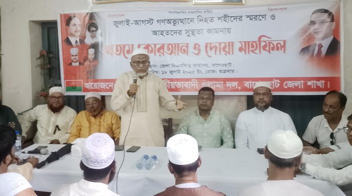পাইকগাছা ( খুলনা) প্রতিনিধি: খুলনার পাইকগাছায় জুলাই শহিদ দিবস পালিত হয়েছে। এ উপলক্ষে উপজেলা প্রশাসন থেকে শহিদদের স্মরণে বুধবার সকালে উপজেলা পরিষদ মিলনায়তনে আলোচনা সভা ও দোয়া মাহফিল অনুষ্ঠানের আয়োজন