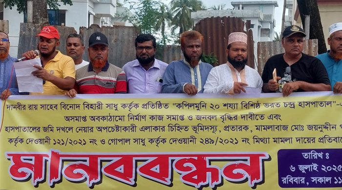 কপিলমুনি (খুলনা) অফিস: ভূমি দস্যুদের হাত থেকে খুলনার কপিলমুনি ভারতচন্দ্র হাসপাতালের অবকাঠামো নির্মাণ কাজ সমাপ্ত করে হস্তান্তর, লোকবল নিয়োগ ও হাসপাতালের জায়গা দখলে ভূমি দস্যুদের দায়ের করা মামলা প্রত্যাহারের দাবিতে