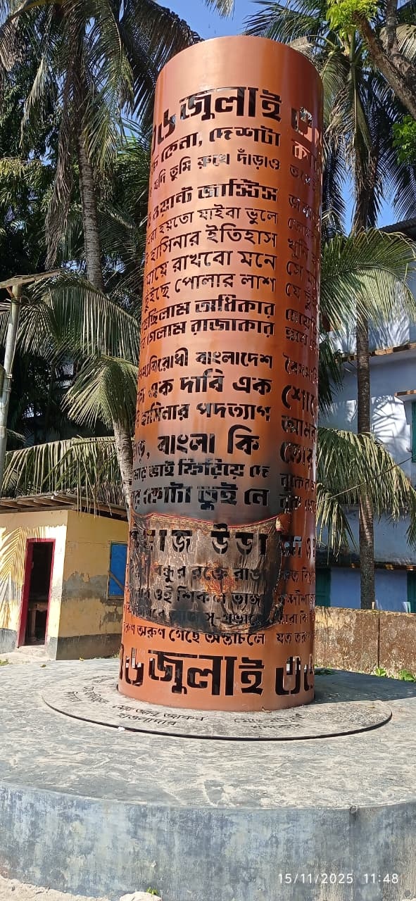 পিরোজপুরে জুলাই শহীদ স্মৃতিস্তম্ভে আগুন