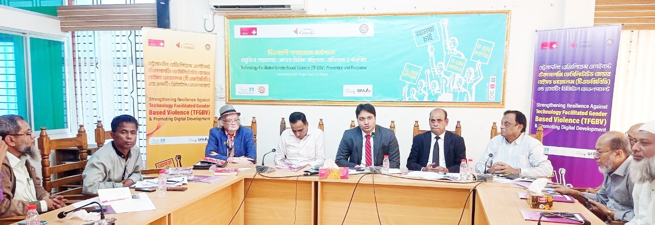 পিরোজপুর অফিস : প্রযুক্তির সহায়তায় জেন্ডারভিত্তিক সহিংসতা (টিএফজিবিভি) প্রতিরোধে দিনব্যাপি গণমাধ্যম কর্মশালা বৃহস্পতিবার পিরোজপুর প্রেসক্লাব মিলনায়তনে অনুষ্ঠিত হয়েছে। বাংলাদেশ এনজিওস