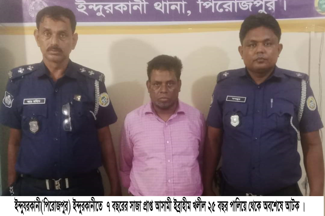 ইন্দুরকানী(পিরোজপুর) প্রতিনিধি: পিরোজপুরের ইন্দুরকানীতে ২৫ বছর পলাতক থাকা ৭ বছরের সাজা প্রাপ্ত আসামী এক হোমিও চিকিৎসক ইব্রাহিম খলিল (৫৪) কে