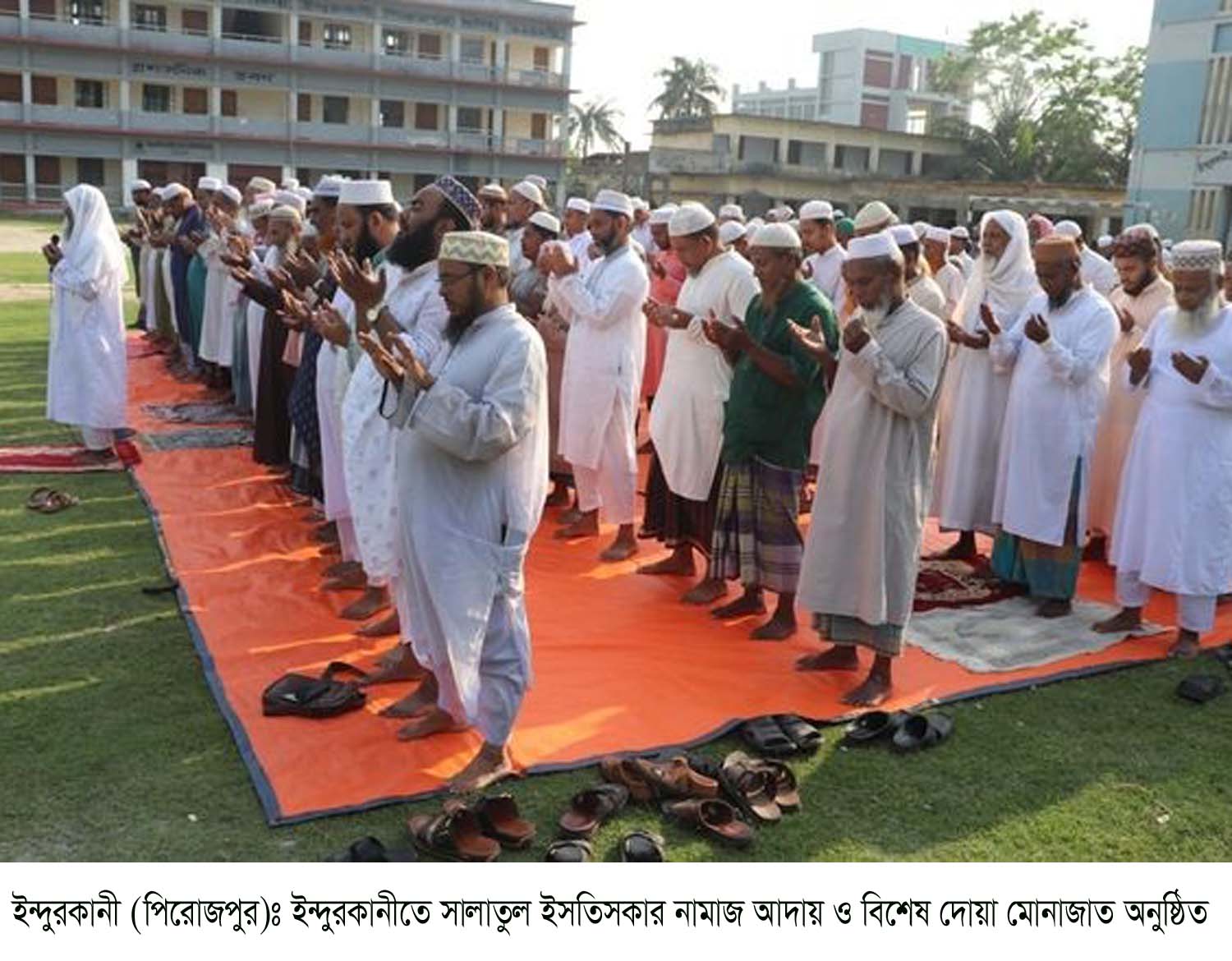 ইন্দুরকানী (পিরোজপুর) প্রতিনিধিঃ ইন্দুরকানীতে বৃষ্টির আশায় সালাতুল ইসতিসকার নামাজ আদায় করেছে স্থানীয় ধর্মপ্রাণ মুসুল্লিরা। ২৪ এপ্রিল বুধবার সকালে স্থানীয় মুসুল্লিদের