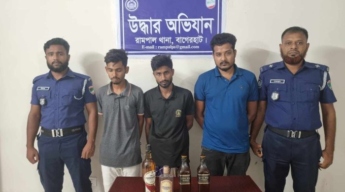 জেলা প্রতিনিধি, বাগেরহাট: বাগেরহাটের রামপালে বিদেশী ও দেশীয় তৈরি মদসহ আটক তিন মাদক কারবারি যুবককে শনিবার (২২ জুন) দুপুরে আদালতের মাধ্যমে জেল হাজতে প্রেরন করা হয়েছে। এর আগে শুক্রবার (২১ জুন) গভির রাতে গোপন সংবাদের ভিত্তিতে রামপাল এনায়েতউল্লাহ মাদ্রাসার সামনে থেকে তাদের আটক করে পুলিশ। আটককৃত যুবকরা হলো, উপজেলার রামপাল সদর ইউনিয়নের শ্রীফলতলা এলাকার আনছার শিকদারের