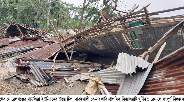 শিব্বির আহমেদ, মোরেলগঞ্জ (বাগেরহাট): প্রলয়ঙ্কারী ঘূর্ণিঝড় রিমালের আঘাতে তছনছ হয়েছে বিদ্যালয়। ভেঙ্গে গেছে আসবাবপত্র। পুনঃসংস্কার না হওয়া পর্যন্ত ক্লাস চালু করা সম্ভব নয়। খাউলিয়া ইউনিয়নের উত্তর চিপা বারইখালী বে-সরকারি প্রাথমিক