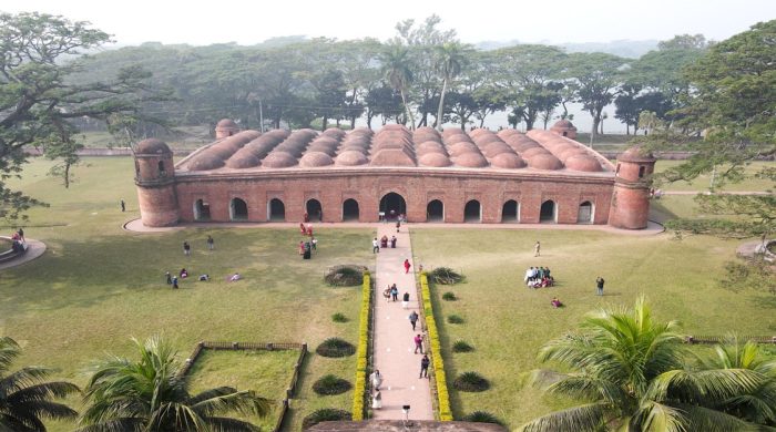 জেলা প্রতিনিধি, বাগেরহাট: ভাবছেন এবার ঈদের ছুটিতে কোথায় ঘুরতে যাবেন। চিন্তা নেই, প্রিয়জনদের নিয়ে ঘুরে আসতে পারেন বিশ্ব ঐতিহ্যের অন্যতম পুরাকীর্তি বাগেরহাটের ষাটগম্বুজ মসজিদ। সুলতান নসিরউদ্দীন মাহমুদ শাহের (১৪৩৫-৫৯) আমলে খান আল-আজম উলুগ খানজাহান সুন্দরবনের কোল ঘেঁষে খলিফাবাদ রাজ্য গড়ে তোলেন। খানজাহান বৈঠক করার জন্য একটি দরবার হল গড়ে তোলেন যা পরে ষাটগম্বুজ মসজিদ হিসেবে প্রতিষ্ঠা পায়। তুঘলকি ও জৌনপুরী নির্মাণশৈলী এতে সুস্পষ্ট। ষাটগম্বুজ মসজিদ বাগেরহাট শহর থেকে মাত্র সাত কিলোকিটার দূরে খুলনা-বাগেরহাট মহাসড়কের উত্তর পাশে ষাটগম্বুজ বাস স্টপেজ লাগোয়া সুন্দরঘোনা গ্রামে অবস্থিত। হজরত খানজাহানের (র.) পৃষ্ঠপোষকতায় নির্মিত অপূর্ব কারুকার্যময় এ মসজিদটি খানজাহানের (মাজার) দরগাহ থেকে প্রায় দেড় কিলোমিটার পশ্চিমে অবস্থিত। স্থাপত্য কৌশলে ও লাল পোড়া মাটির উপর লতাপাতার অলংকরণে পাঁচ শতাব্দীরও বেশি পুরনো এ মসজিদ এক বিশেষ স্থান অধিকার করে রয়েছে। ষাটগম্বুজ মসজিদ নামে পরিচিত হলেও এ মসজিদে মধ্যযুগীয় স্থাপত্যশৈলীর মোট ৮১টি গম্বুজ রয়েছে। এ মসজিদটি দেখতে প্রতিদিন অসংখ্য দেশি-বিদেশি দর্শনার্থী আসেন। ষাটগম্বুজ ছাড়াও বাগেরহাট এলে ঘুরে দেখতে পারবেন খান জাহানের নির্মিত প্রাচীন রাস্তা, জিন্দাপীর মসজিদ, নয় গম্বুজ মসজিদ, সিংড়া মসজিদ, রণবিজয়পুর মসজিদ, চুনাখোলা মসজিদ, বিবি বেগনী মসজিদ, সাবেকডাঙ্গা পুরাকীর্তিসহ অন্যান্য ঐতিহাসিক নিদর্শন। ষাটগম্বুজ ইউনিয়নের চেয়ারম্যান আক্তারুজ্জামান বাচ্চু বলেন, প্রতিদিনই দেশি-বিদেশি পর্যটকরা আসেন। তবে ঈদের ছুটিতে ষাট গম্বুজ মসজিদ ও খান জাহান আলীর মাজার এলাকায় দর্শনার্থীদের ভিড় বেশি হয়। হাজারো দর্শকের পদচারণায় উৎসবমুখর পরিবেশ বিরাজ করে এখানে। ষাটগম্বুজ মসজিদের পাশেই রয়েছে একটি জাদুঘর। ইউনেস্কোর সহযোগিতায় বাংলাদেশ প্রত্নতত্ত্ব অধিদপ্তর এটি প্রতিষ্ঠা করেছে। ঐতিহাসিক এলাকাটি থেকে প্রাপ্ত প্রাচীন নিদর্শনগুলো এখানে সংরক্ষণ করা হয়েছে যাতে বাগেরহাটের ইতিহাস সম্পর্কে মানুষকে জানানো যায়। এখানে তিনটি প্রদর্শনী কক্ষ রয়েছে যেখানে ‘বাগেরহাটের ঐতিহাসিক মসজিদের শহর’ সংক্রান্ত প্রাচীনলেখনী, সিরামিক, টেরাকোটা ও কারুকার্যময় ইটের নিদর্শন রয়েছে। বাংলাদেশের গুরুত্বপূর্ণ ঐতিহাসিক দালানের ছবিও প্রদর্শনীতে স্থান পেয়েছে। বাগেরহাট জাদুঘরের কাস্টোডিয়ান মোঃ যায়েদ বলেন, ওয়ার্ল্ড হেরিটেজ ষাটগম্বুজ মসজিদ ও হজরত খানজাহানের