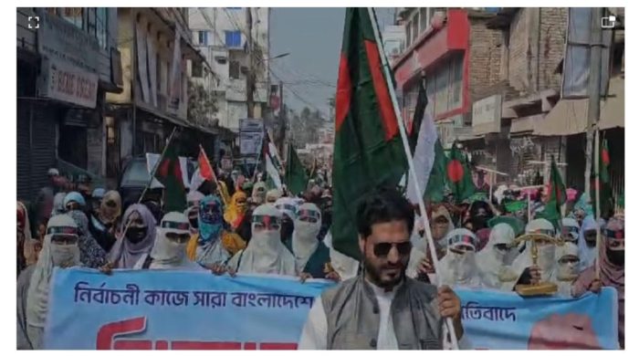 বাগেরহাট প্রতিনিধি: বাগেরহাটে বিক্ষোভ মিছিল ও সমাবেশ করেছে বাংলাদেশ জামায়াতে ইসলামী মহিলা বিভাগ। শনিবার (৭ ফেব্রুয়ারি) সকালে বাগেরহাট স্বাধীনতা উদ্যানের সামনে থেকে বিক্ষোভ মিছিল শুরু হয়ে শহরের প্রধান প্রধান সড়ক