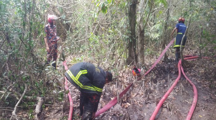 আবু-হানিফ,বাগেরহাট অফিসঃ সুন্দরবনের চাঁদপাই রেঞ্জের আমরবুনিয়া এলাকায় লাগা আগুন নেভাতে বনরক্ষী- ফায়ার সার্ভিসের পাশাপাশি যোগ দিয়েছে নৌ বাহিনী, কোস্টগার্ড ও বিমান বাহিনীর একটি হেলিকপ্টার। রবিবার (৫ মে) সকালে নৌবাহিনীর মোংলা