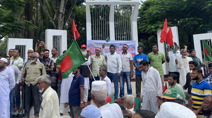 জেলা প্রতিনিধি, বাগেরহাট: কোটা বিরোধী আন্দোলনের নামে মুক্তিযোদ্ধাদের কটুক্তি করার প্রতিবাদে বাগেরহাটে বিক্ষোভ মিছিল, সমাবেশ ও স্মারকলিপি প্রদান করেছে মুক্তিযোদ্ধারা । বৃহস্পতিবার (১৮জিুলাই) সকালে শহরের কেন্দ্রীয় শহীদ মিনার থেকে শুরু