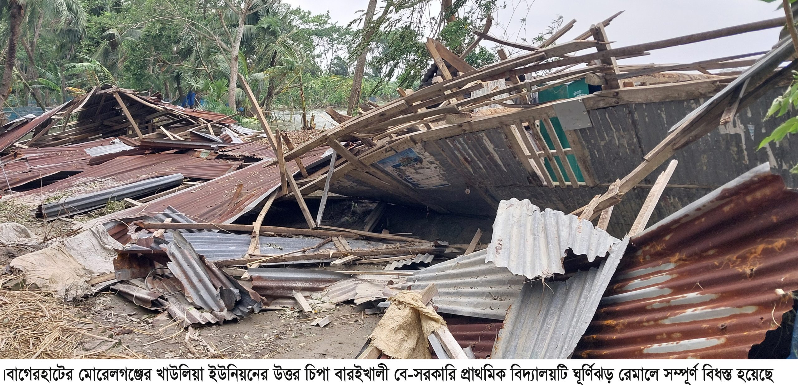 ঘূর্ণিঝড় রিমাল মোরেলগঞ্জের উত্তর চিপা বারইখালী বে-সরকারি বিদ্যালয়টি সম্পূর্ন বিধস্ত