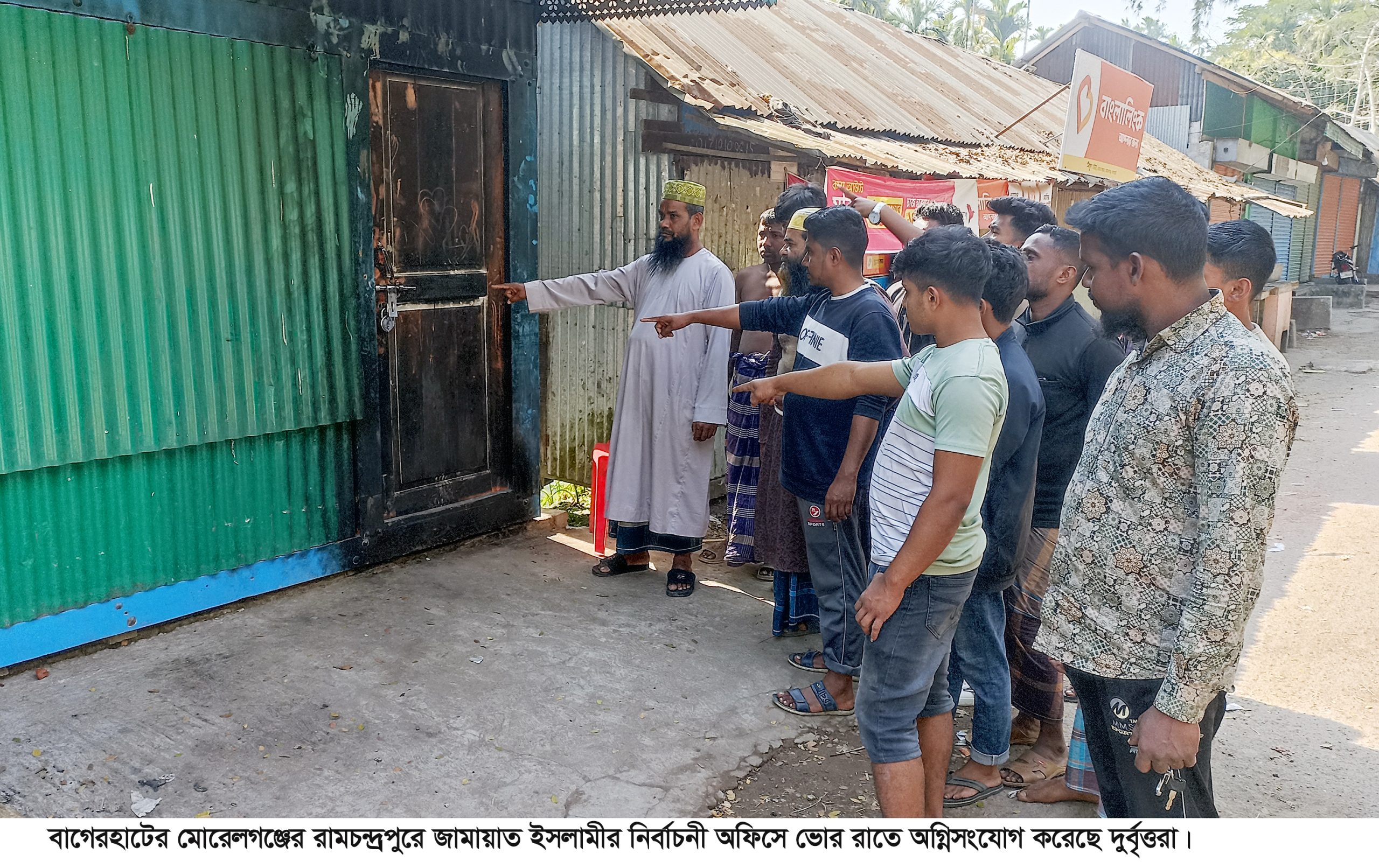 মোরেলগঞ্জে জামায়াতের নির্বাচনী অফিসে আগুন