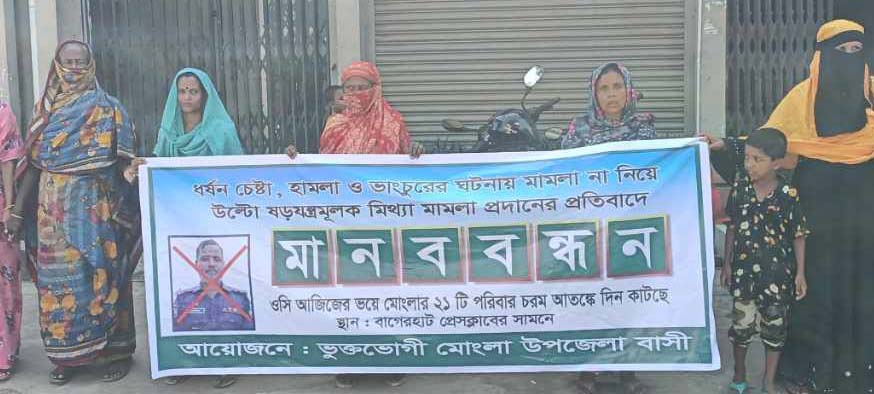 মোংলা থানার ওসির অপসারনের দাবীতে বাগেরহাটে মানববন্ধন