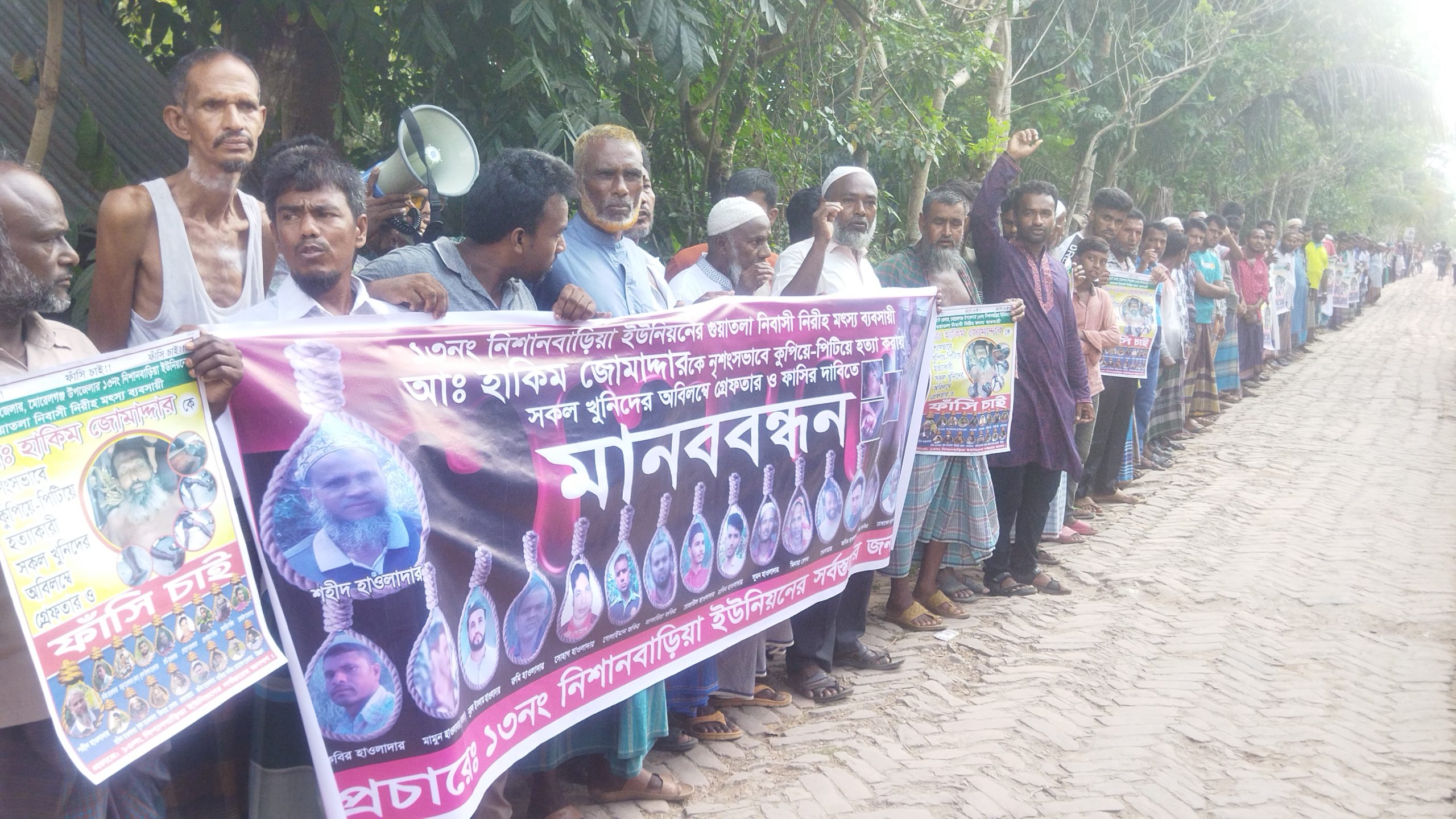 মোরেলগঞ্জে কৃষক হাকিম জোমাদ্দারের হত্যাকারিদের গেফতার দাবিতে মানববন্ধন