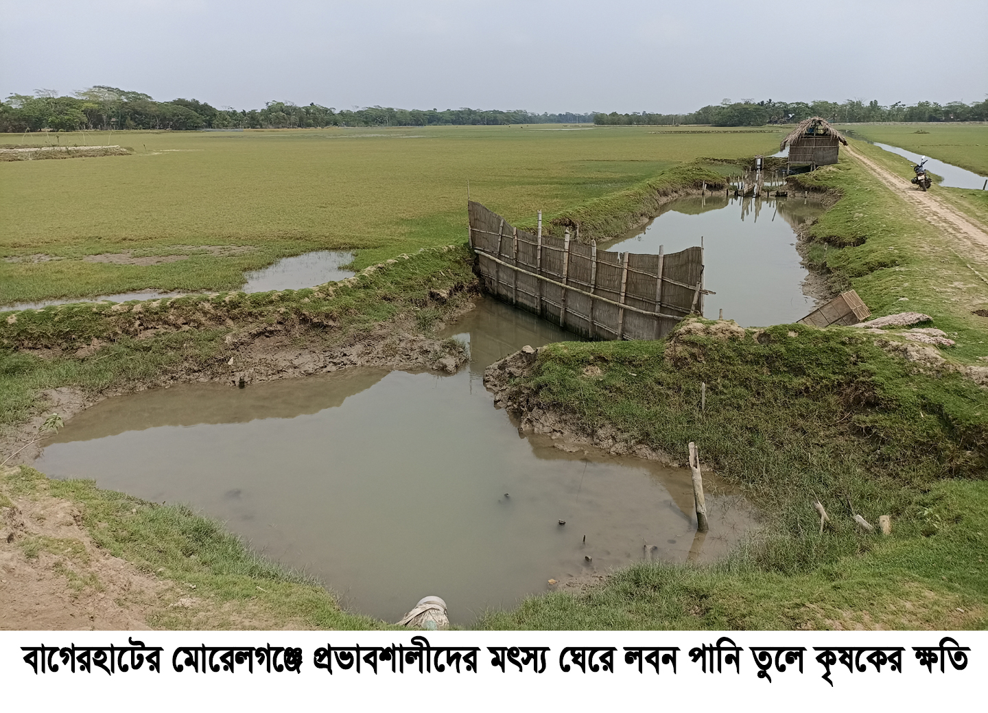 মোরেলগঞ্জে প্রভাবশালীদের মৎস্য ঘেরের লবন পানিতে হুমকীর মূখে দেড়’শ একর ফসলি জমি