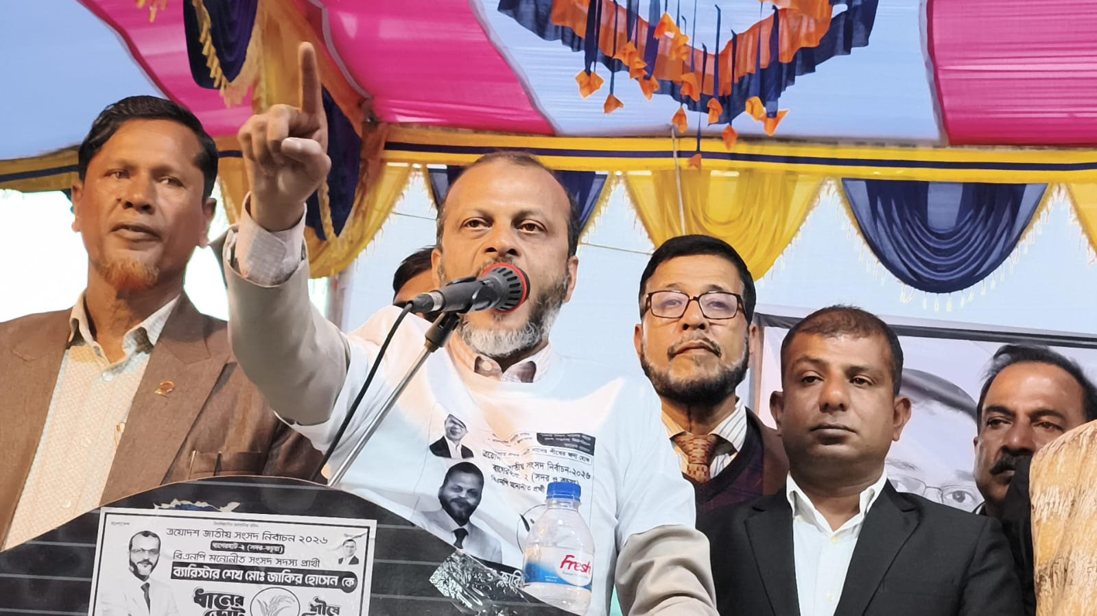 চাঁদাবাজ সন্ত্রাসীদের বিএনপিতে কোন জায়গা হবে না – নির্বাচনী জনসভায় ব্যারিস্টার জাকির