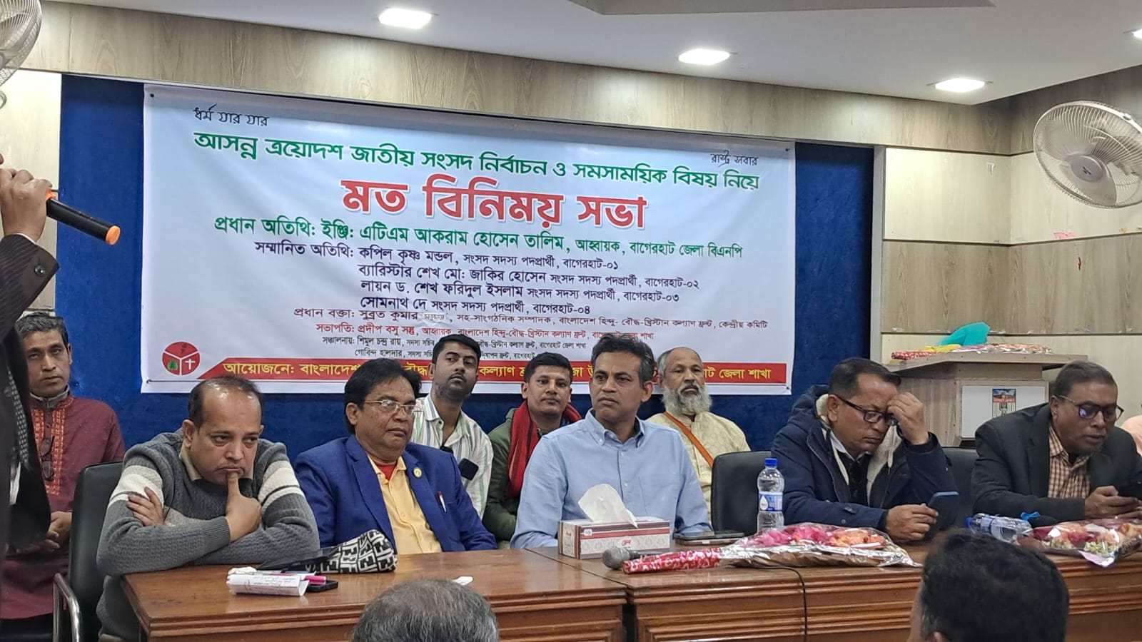 বাগেরহাটে বিএনপির চার প্রার্থীর অনুপস্থিতিতে কল্যাণ ফ্রন্ট ও পূজা উদযাপন ফ্রন্টের মতবিনিময় সভা অনুষ্ঠিত
