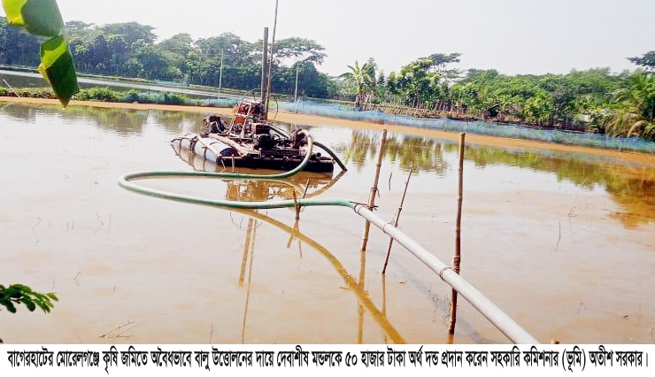 ভ্রাম্যমান আদালতে ৫০ হাজার টাকা অর্থদন্ড; মোরেলগঞ্জে কৃষি জমিতে ড্রেজার মেশিন বসিয়ে বালু উত্তোলন