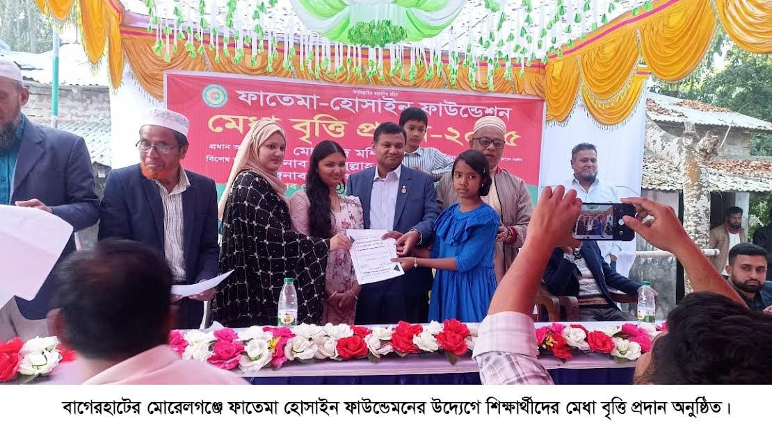 মেহেদী হাসান লিপন, মোরেলগঞ্জ (বাগেরহাট) সংবাদদাতা: বাগেরহাটের মোরেলগঞ্জে ফাতেমা হোসাইন ফাউন্ডেশনের উদ্যেগে ১০৯ জন মেধাবী শিক্ষার্থীকে বৃত্তি প্রদান করা হয়েছে।