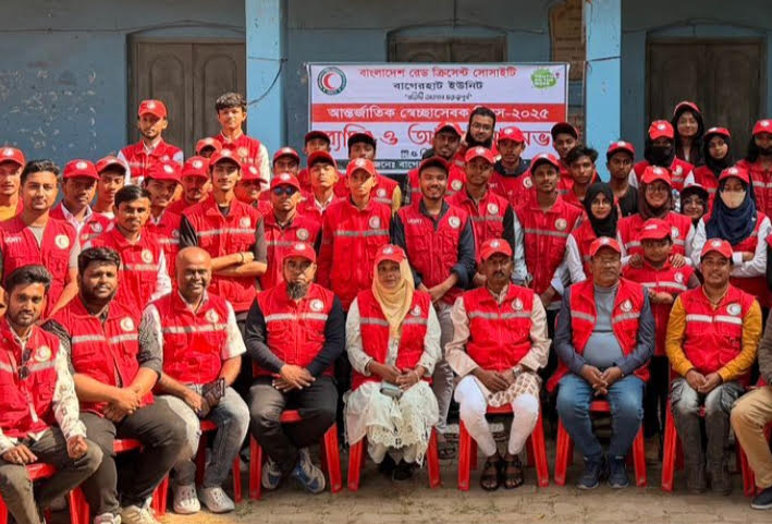বাগেরহাট প্রতিনিধিঃ বাগেরহাট রেড ক্রিসেন্ট ইউনিট আন্তর্জাতিক স্বেচ্ছাসেবক দিবস-২০২৫ যথাযোগ্য মর্যাদায় উদযাপন করেছে। দিবসটি উপলক্ষে শুক্রবার ( ৫ ডিসেম্বর) সকালে