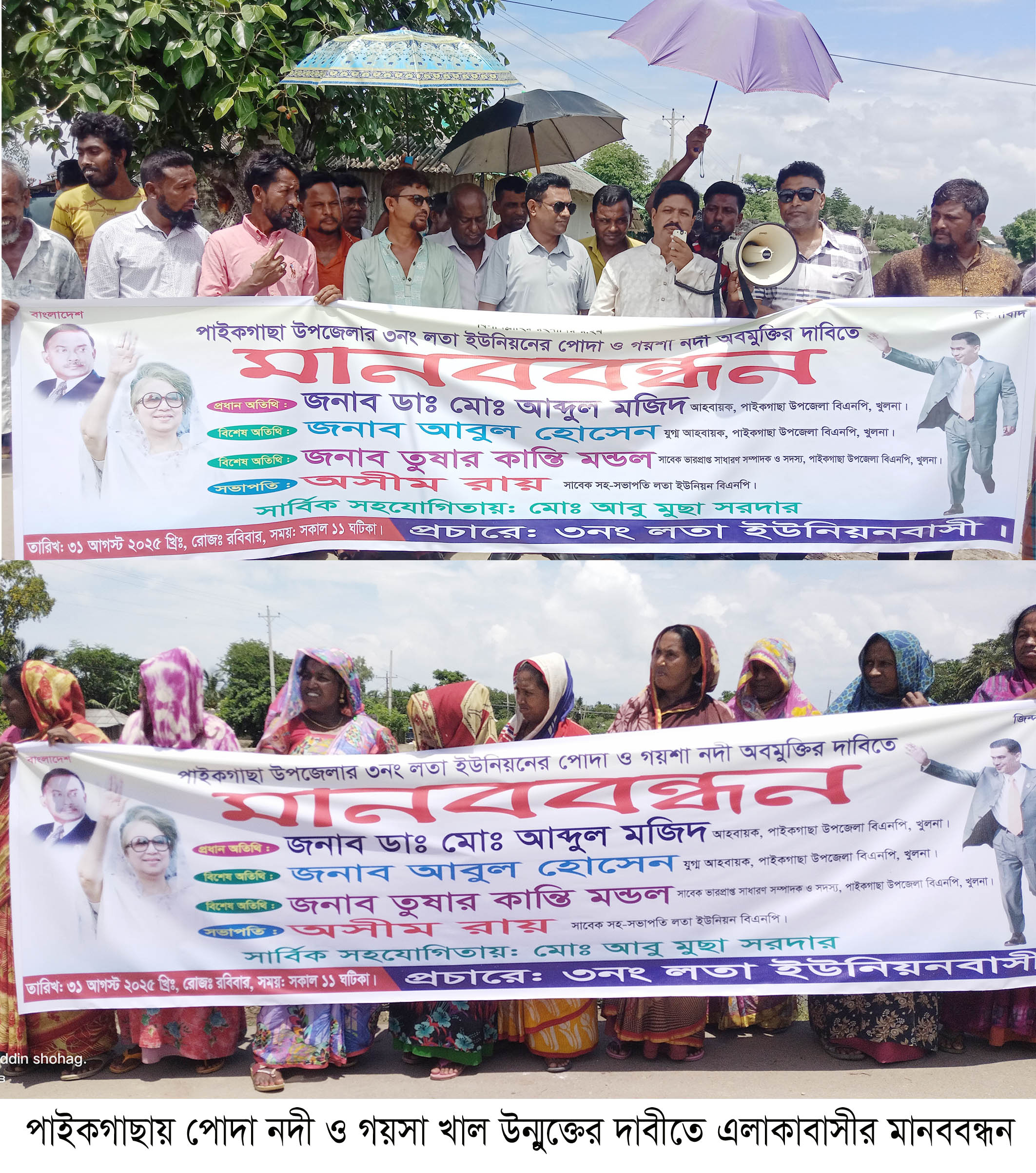 পাইকগাছায় পোদা নদী ও গয়সা খাল উন্মুক্তের দাবীতে মানববন্ধন অনুষ্ঠিত