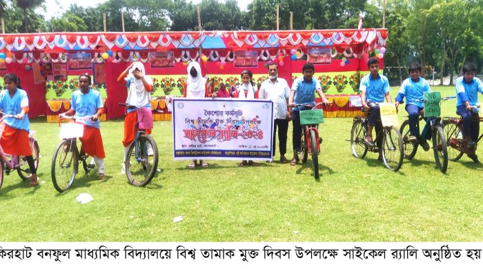 ফকিরহাট প্রতিনিধি: ফকিরহাট বনফুল মাধ্যমিক বিদ্যালয়ে বিশ্ব তামাক মুক্ত দিবস উপলক্ষে সাইকেল র্যালি ও কৈশোর মেলা’ অনুষ্ঠিত হয়েছে। বুধবার (১৫ মে) দিনব্যাপি আরআরএফ ও পিকেএসএফ এর যৌথ আয়োজনে সাইকেল র্যালি