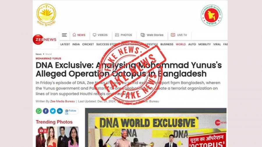 অন্তর্বর্তীকালীন সরকারের প্রধান উপদেষ্টা ড. মুহাম্মদ ইউনূসকে নিয়ে ভারতের জি নিউজে প্রকাশিত সংবাদটি সম্পূর্ণ মিথ্যা ও বানোয়াট বলে জানিয়েছে চিফ