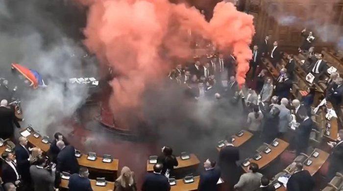 আন্তর্জাতিক ডেস্ক: সার্বিয়ার পার্লামেন্টে গত মঙ্গলবার এক অভূতপূর্ব ঘটনা ঘটেছে। বিরোধী দলের আইনপ্রণেতারা সরকারের বিরুদ্ধে প্রতিবাদ জানাতে এবং চলমান শিক্ষার্থী আন্দোলনের প্রতি সমর্থন প্রকাশ করতে পার্লামেন্টের অধিবেশনকক্ষে স্মোক গ্রেনেড ও