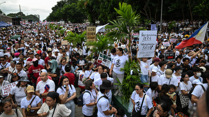 বিদেশ : বন্যা নিয়ন্ত্রণ প্রকল্প এবং প্রেসিডেন্ট ফার্দিনান্দ মার্কোস জুনিয়রের মিত্রসহ শীর্ষ সরকারি কর্মকর্তাদের দুর্নীতি কেলেঙ্কারির জবাবদিহিতার দাবিতে ফিলিপাইনের রাজধানী ম্যানিলার রাস্তায় নেমেছে হাজার হাজার মানুষ। বিক্ষোভকারীরা তিন দিনের সমাবেশ