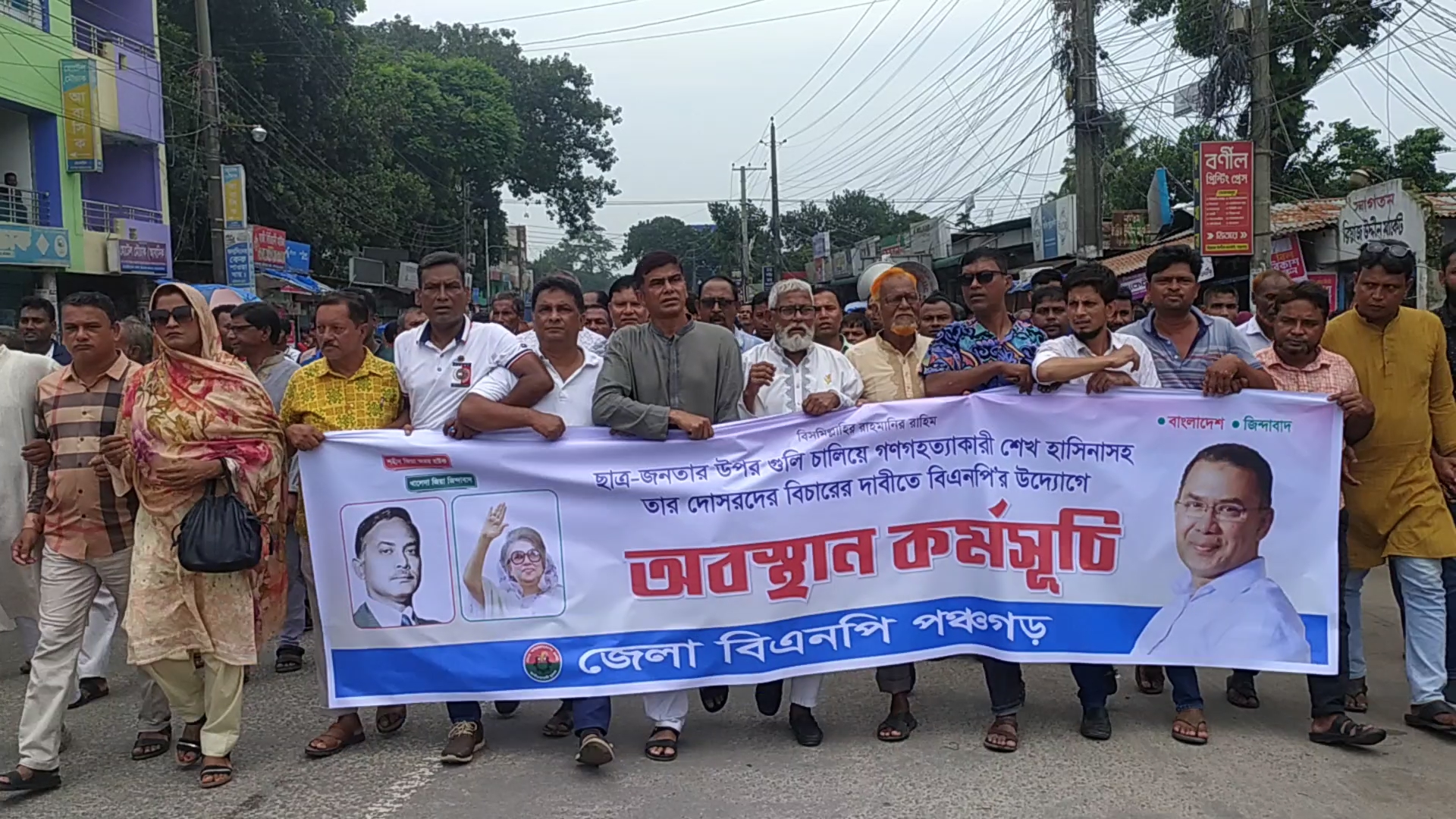 সাইদুজ্জামান রেজা, পঞ্চগড়ঃ পঞ্চগড়ে বিএনপি অবস্থান কর্মসূচি পালন করছে। ছাত্র জনতাকে গুলি করে গনহত্যার দায়ে শেখ হসিনাকে বিচারের আওতায় এনে