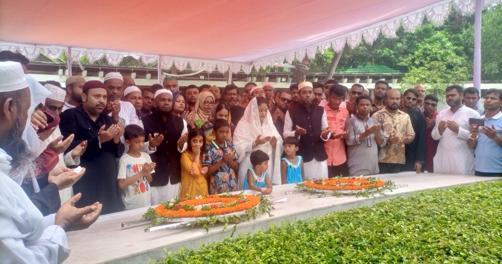 ১৪ জুন শুক্রবার দুপুরে বঙ্গবন্ধুর সমাধী সৌধ বেদীতে পুস্পমাল্য অর্পণ করে গভীর শ্রদ্ধা নিবেদন করা হয়। পরে পবিত্র সূরা ফাতেহা ও দরুদ পাঠ শেষে ‘৭৫ -এর ১৫ আগস্ট বঙ্গবন্ধু সহ তাঁর পরিবারে নিহত সকল শহীদের রুহের মাগফিরাত কামনায়, ‘৭১-এর মহান মুক্তিযুদ্ধে আত্মোৎসর্গকারী সকল শহীদের রুহের মাগফেরাত কামনায় এবং বঙ্গবন্ধু কন্যা প্রধানমন্ত্রী শেখ হাসিনার সুস্বাস্থ্য ও দীর্ঘায়ু কামনা করে বিশেষ দোয়া ও মোনাজাত করেন।