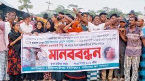 বৃহস্পতিবার( ৮মে) বিকেল দিকে জিউধরা বাজার এলাকায় অনুষ্ঠিত মানববন্ধনে নিহত শাফায়েত তালুকদারের পিতা, মাতা, বিধাব স্ত্রী ও দুই বোনসহ শতশত নারী পুরুষ, ক্ষুব্ধ গ্রামবাসি অংশ গ্রহন করেন।