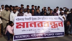 খুলনার পাইকগাছা ও কয়রা বাসীর প্রাণের দাবি শিববাটি ব্রীজের টোল স্থায়ীভাবে অবমুক্ত দাবিতে মানববন্ধন অনুষ্ঠিত