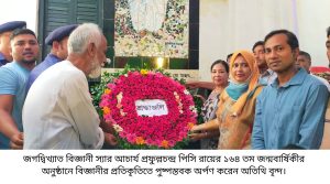 ইমদাদুল হক,পাইকগাছা ( খুলনা): খুলনার পাইকগাছায় নানা আয়োজনের মধ্য দিয়ে জগদ্বিখ্যাত বিজ্ঞানী স্যার আচার্য প্রফুল্লচন্দ্র পিসি রায়ের ১৬৪ তম জন্মবার্ষিকী পালিত হয়েছে।