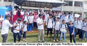ক্ষুব্ধ শিক্ষার্থীরা বৃহস্পতিবার এ ঘটনার প্রতিবাদে শ্রেণিকক্ষ ছেড়ে রাস্তায় নেমে পড়েন। তারা ওই শিক্ষকের জামিন না হওয়া পর্যন্ত ক্লাশ বর্জনের ঘোষণা দিয়েছেন। শিক্ষার্থীদের অভিযোগ, একজন দক্ষ ও আদর্শ শিক্ষককে ষড়যন্ত্রমূলকভাবে মামলায় জড়িয়ে হয়রানী করা হচ্ছে। এ ঘটনার নেপথ্যে স্থানীয় একটি কুচক্রী মহলের সাথে বিদ্যালয়ের কোন কোন শিক্ষকও জড়িত থাকতে পারেন।