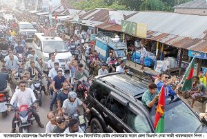 ছোলমবাড়িয়া বালুরমাঠ থেকে এক কিলোমিটার দীর্ঘ লাইনে এ মোটর শোভাযাত্রাটি বের হয়ে কালিকাবাড়ি, আমতলা, দৈবজ্ঞহাটী, বাধাল বাজার, বনগ্রাম, হোগলাপাশা, বৌলপুর পোলেরহাট বাজার প্রায় ২০ কিলোমিটার শোভাযাত্রা করেন। এ শোভাযাত্রায় দলীয় ব্যানার, ফেস্টুন জাতীয় ও দলীয় পতাকা শহকারে উৎসব মুখর পরিবেশে নানা রংয়ে সজ্জিত হয়ে শোভাযাত্রায় অংশ নেন নেতাকর্মীরা।