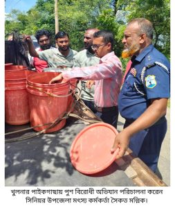 পাইকগাছা ( খুলনা )  প্রতিনিধিঃ খুলনার পাইকগাছায় পুশ বিরোধী অভিযানে ৩ চিংড়ী ব্যবসায়ী কে জরিমানা এবং পুশকৃত চিংড়ী জব্দ করা হয়েছে।